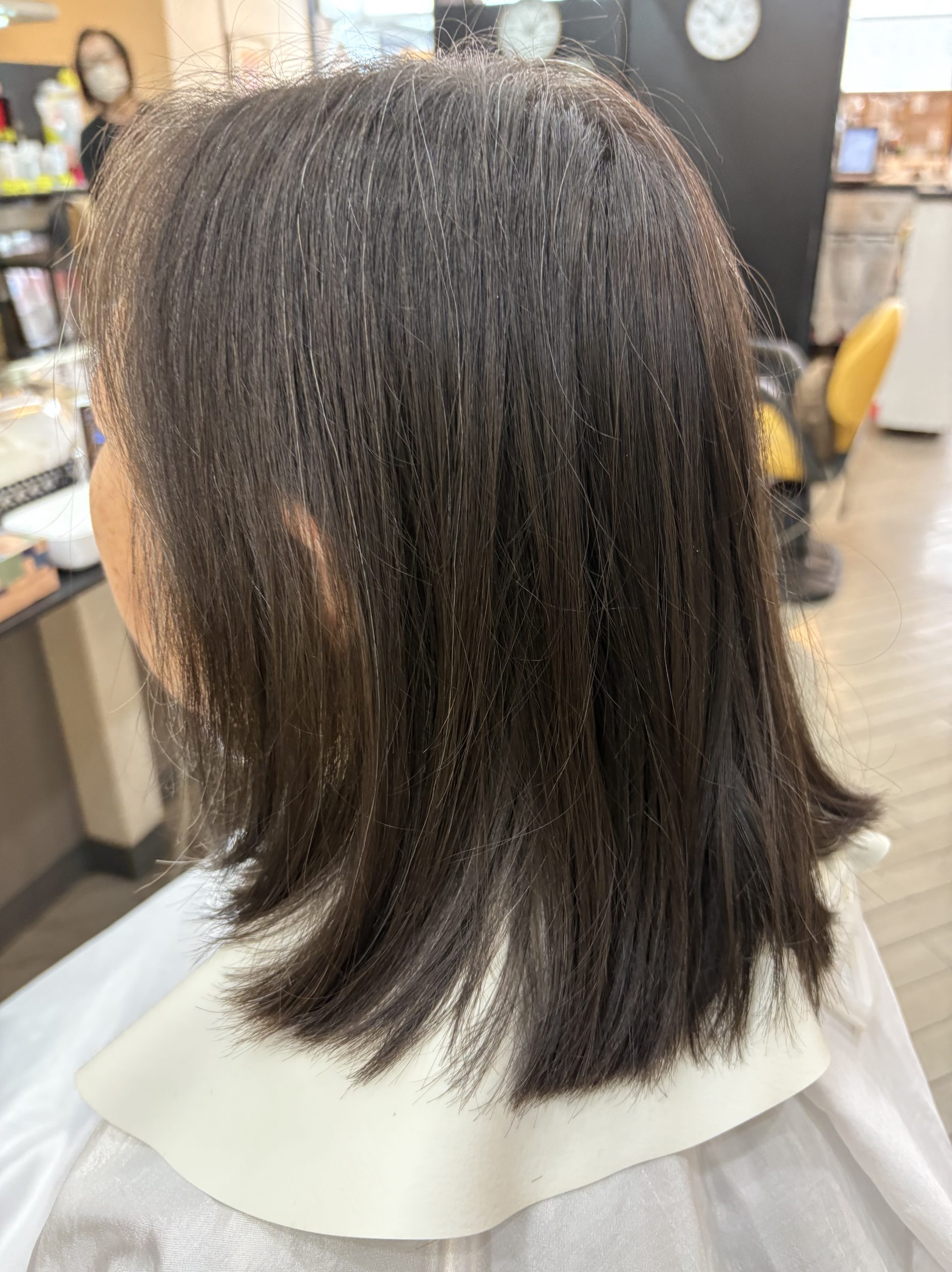 かなり伸びていたので骨格修正しながら長さと量を調整して仕上げはドライヤーで乾かすだけでこのスタイルになります😊