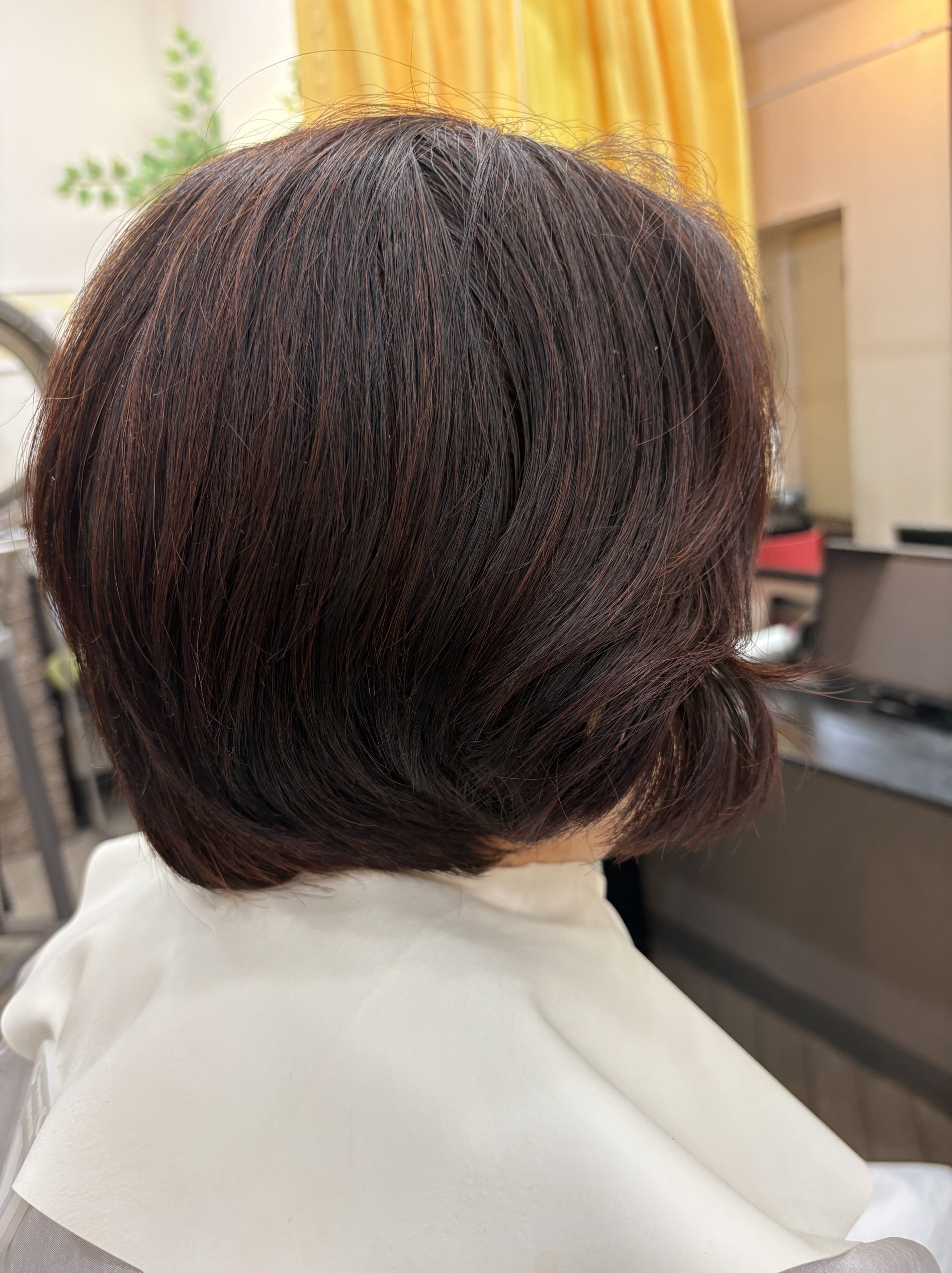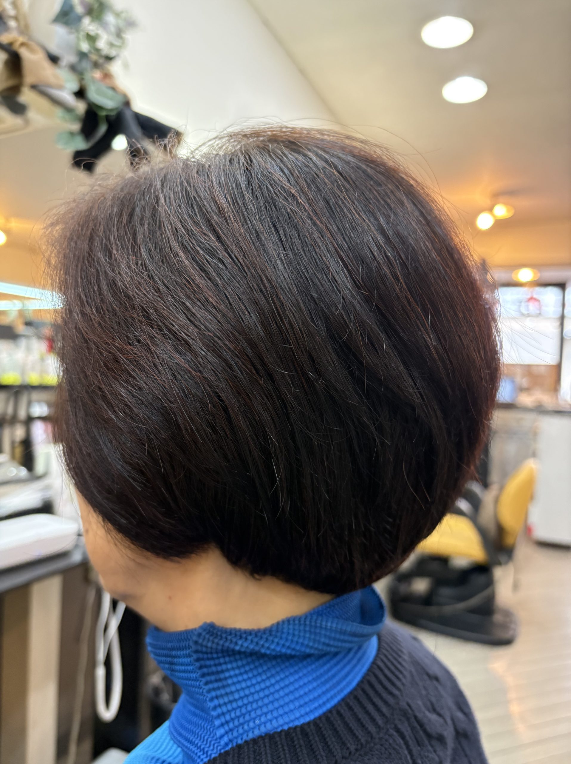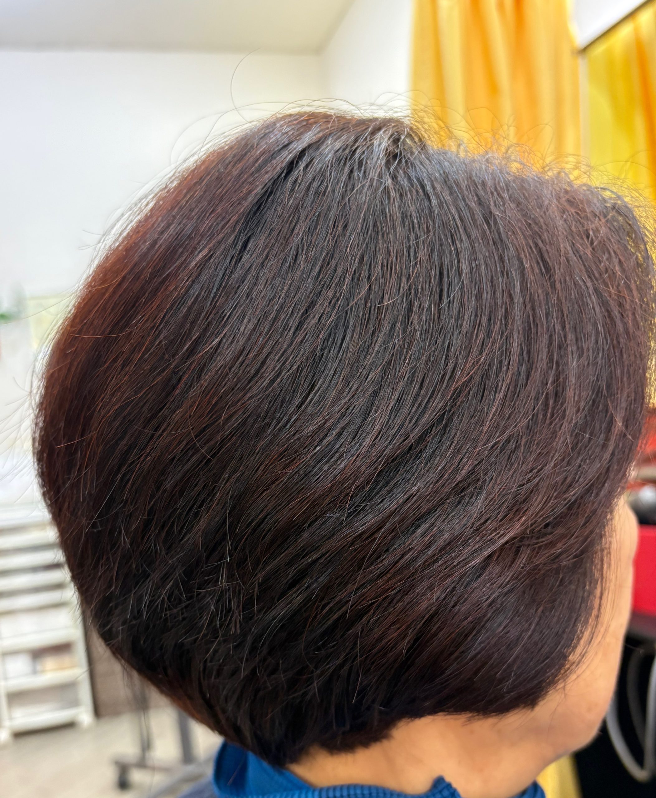 少し伸びていたので骨格修正しながら長さと量を調整してまとまりやすいスタイルにカットして白髪は美らヘア+美ら藍で施術して仕上げはドライヤーで乾かせばこのスタイルになります😊