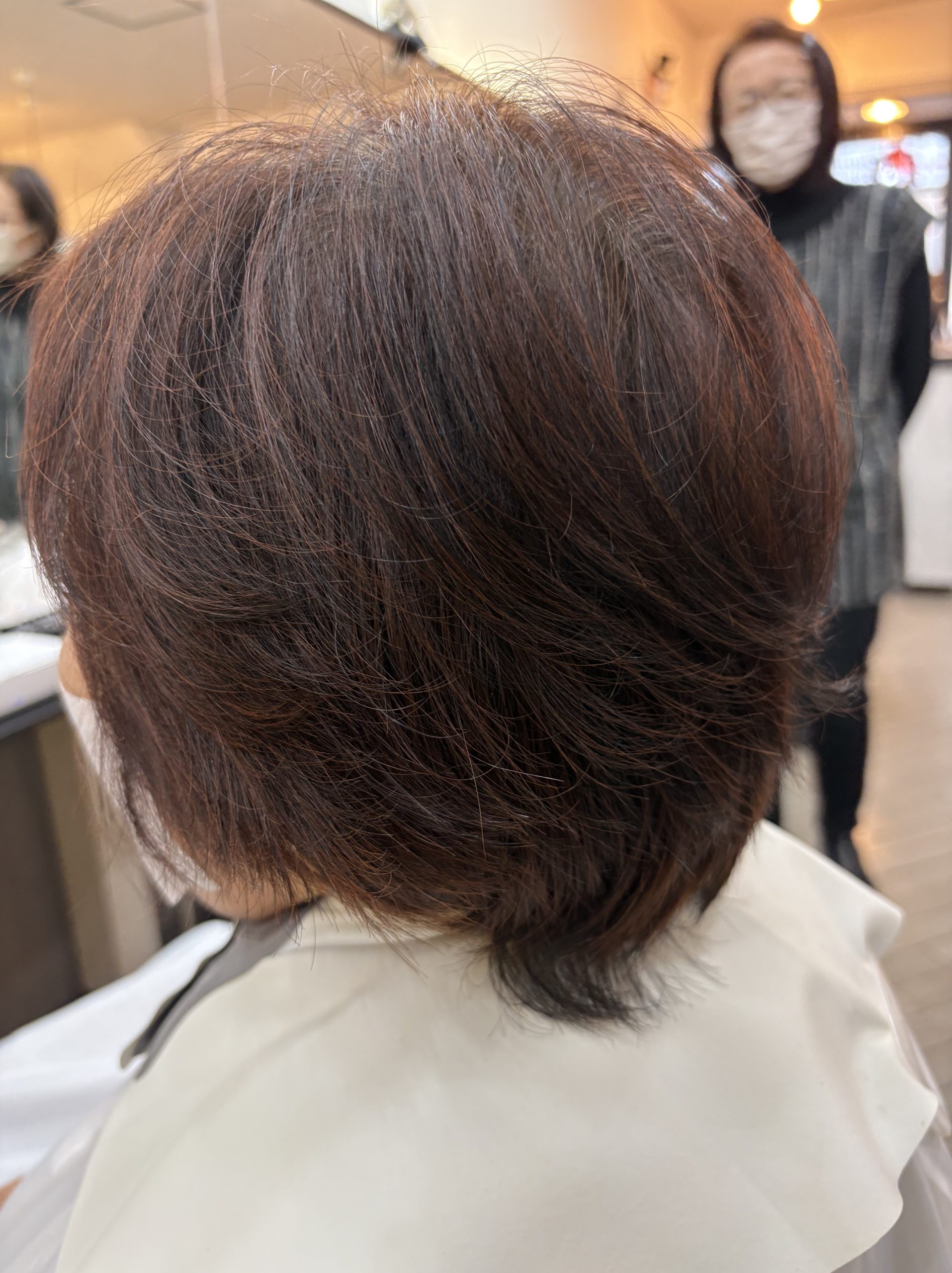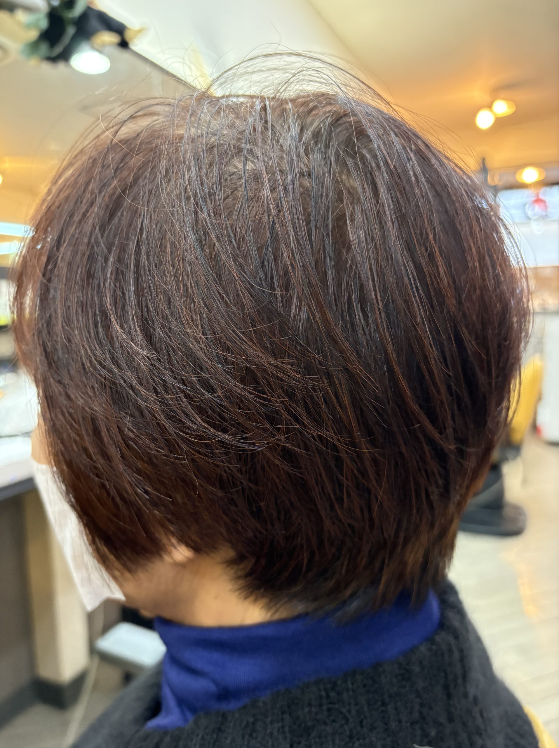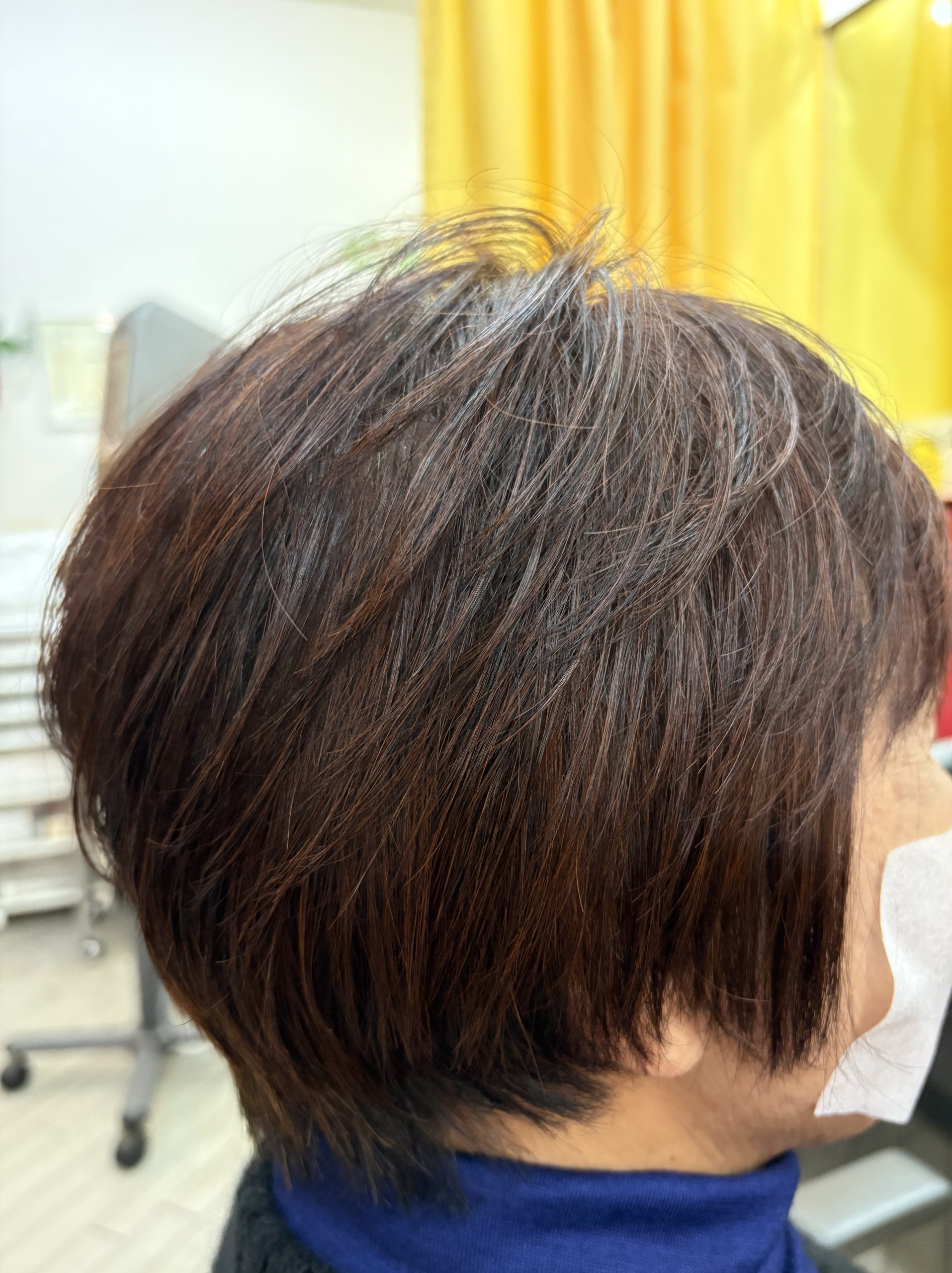 少し伸びていたので骨格修正しながら長さと量を調整してまとまりやすいスタイルにカットして白髪は美らヘア&美ら藍で施術して仕上げはドライヤーで乾かせばこのスタイルになります😊