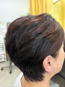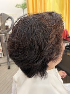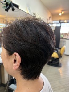 少し伸びていて収まりが少し悪くなっていたのでお客様の骨格修正しながら長さと量を調整して白髪は美らヘナで施術して仕上げはドライヤーで乾かすだけでこのスタイルになります。😊