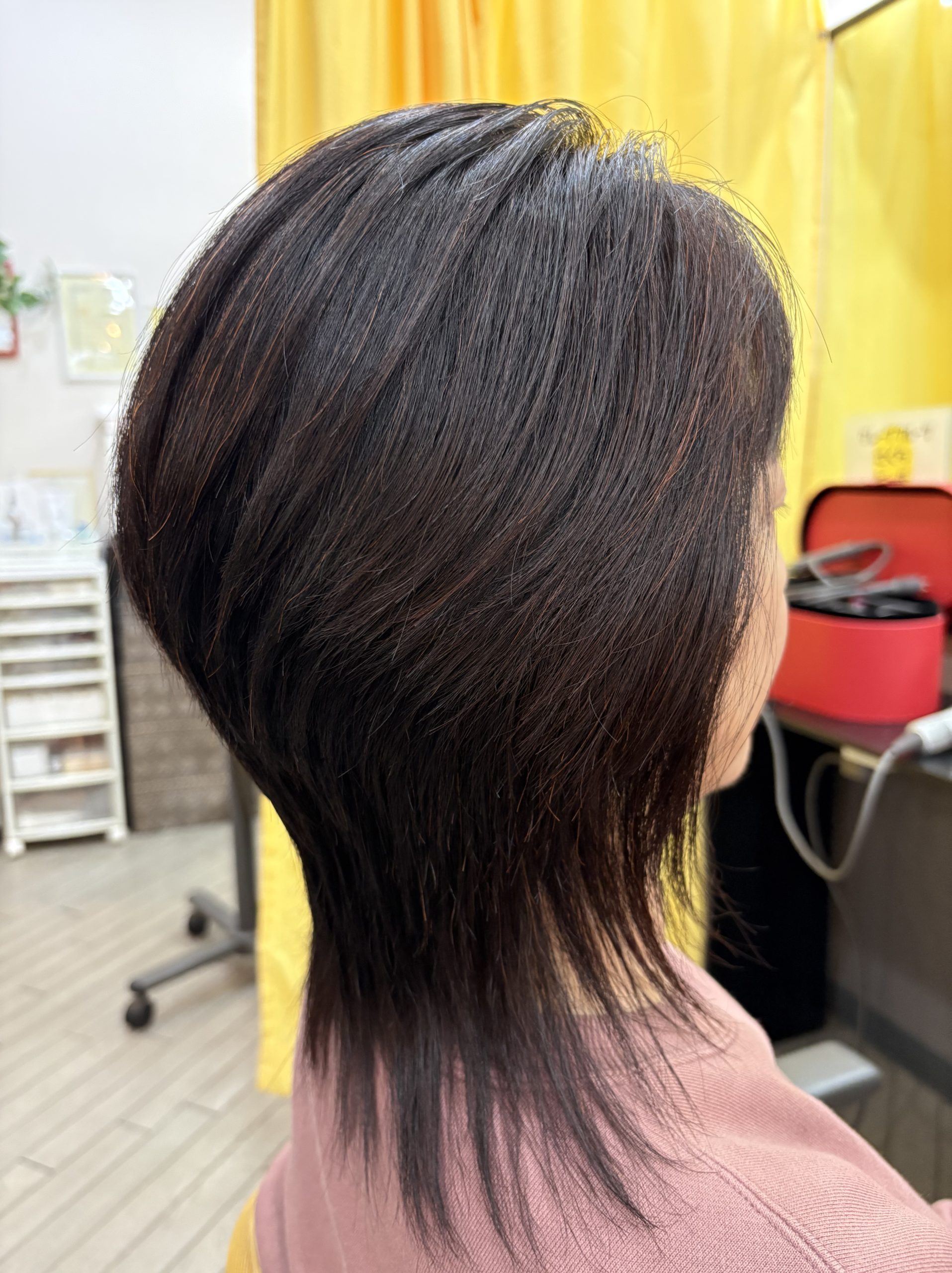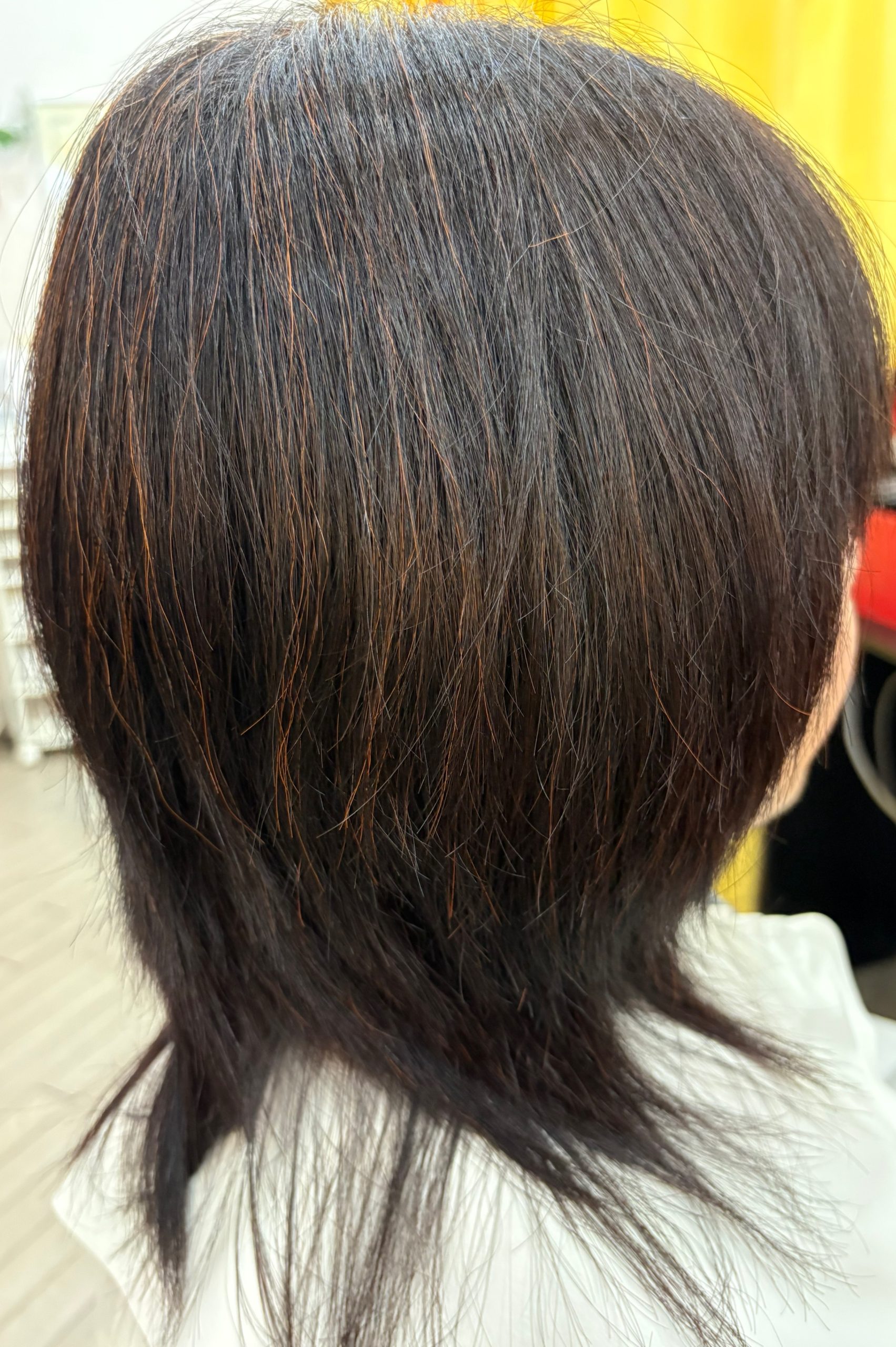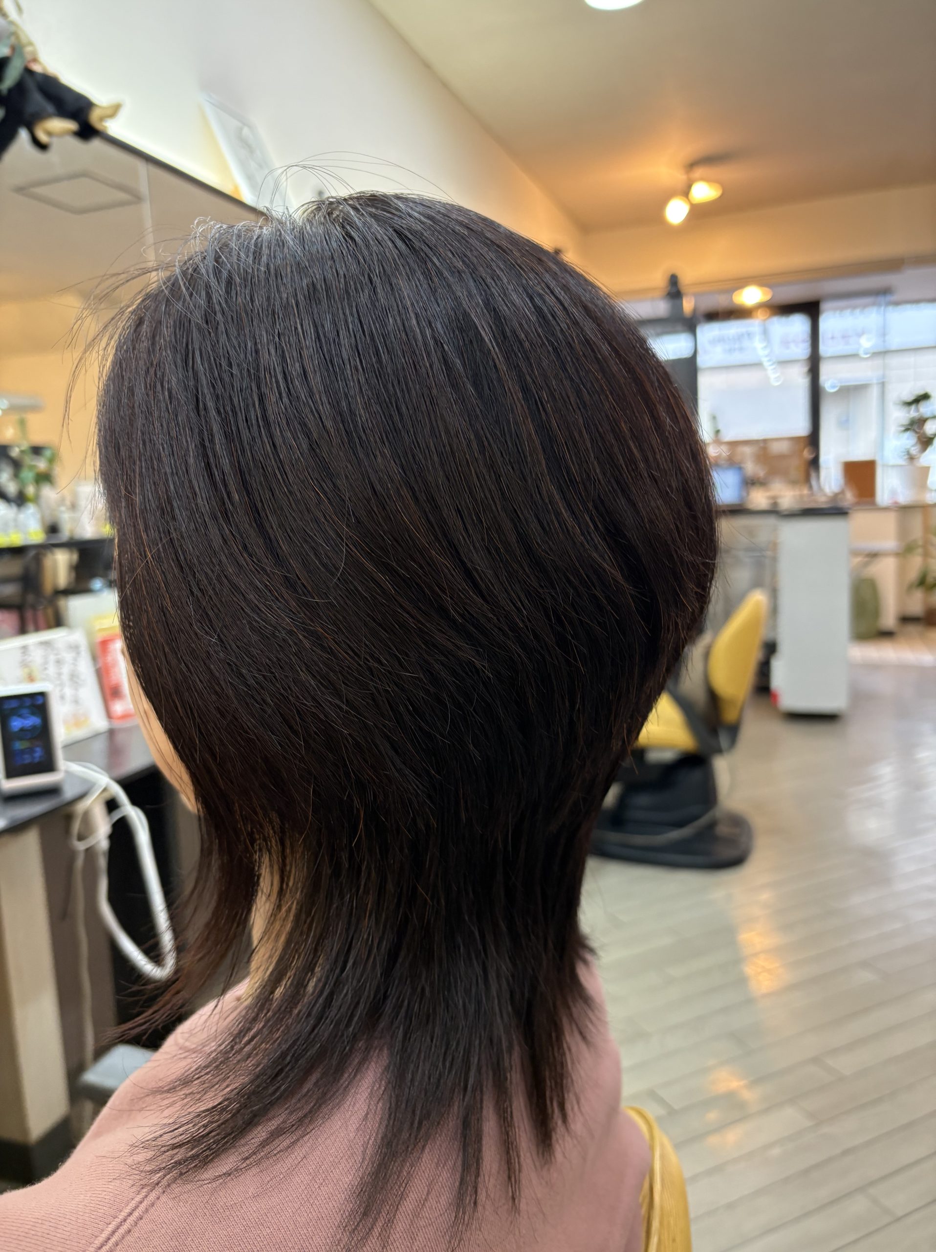 少し伸びていたので骨格修正しながら長さと量を調整してまとまりやすいスタイルにカットして白髪はHQヘナで施術して仕上げはドライヤーで乾かせばこのスタイルになります😊